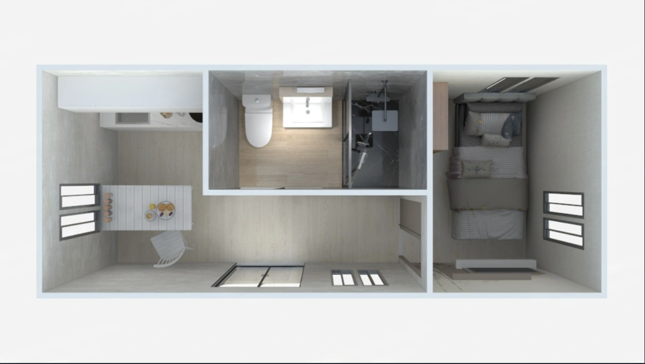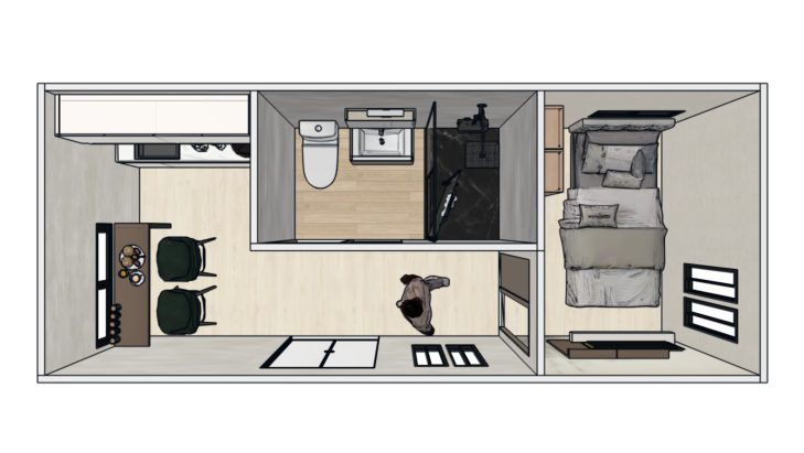 Elke container home kan op maat worden gemaakt . U kiest de indeling, wandafwerking en extra opties. Wanden kunnen overal geplaatst worden voor de perfecte indeling.