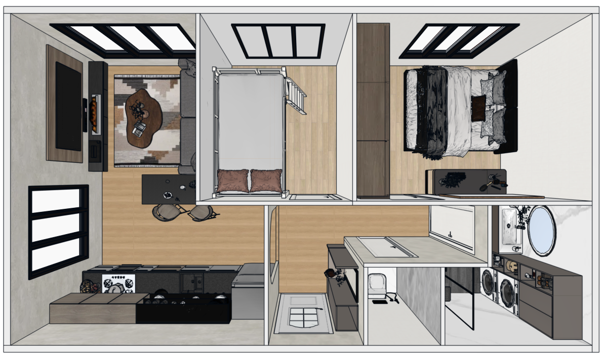 Dankzij deze bouwmethode combineren wij ontwerpvrijheid met duurzaamheid. Dit betekent dat uw tiny house volledig op maat kan worden ontworpen — van dakvorm en gevelafwerking tot indeling en afwerkingsniveau.